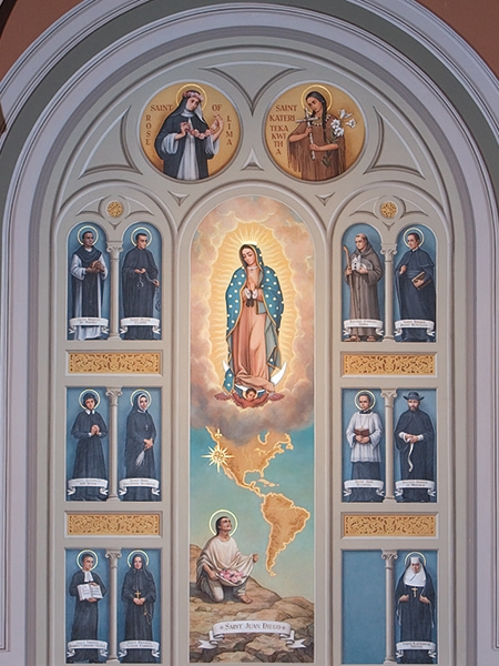 Our Lady of Guadalupe is not only the patroness of the Diocese of Sacramento but of two other California dioceses as well, Orange and San Bernardino. Furthermore, she has been declared the Patroness of all the Americas. A beautiful painting of Our Lady and Saints of the Americas is located in the north chapel in the Cathedral of the Blessed Sacrament. There is also a downtown parish in Sacramento named for Our Lady of Guadalupe.