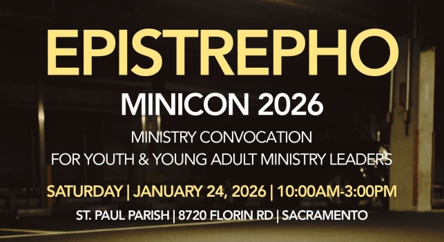 EPISTREPHO is a Ministry Convocation for Youth & Young Adult Ministry Leaders. It will be held on Saturday, January 24, 2026 from 10:00am-3:00pm.