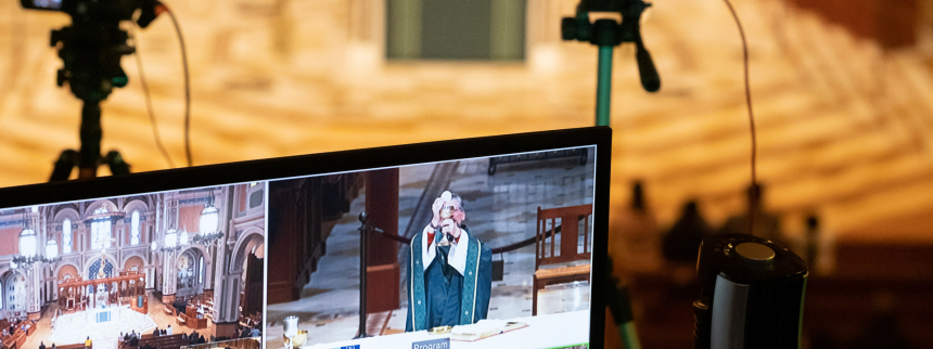 “People were yearning for Christ, yearning for sacraments,” says Ruben Arocan, 34, cantor and long-time altar server/master of ceremonies for Cathedral liturgies. Recalling the earliest months of the pandemic “when it seemed like the world was coming to an end,” Ruben describes an “organic” digital response to the obvious spiritual hunger permeating throughout the parish community.